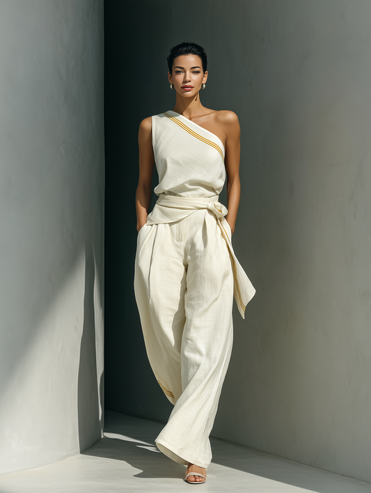 Kali | Conjunto Top Asimétrico y Pantalón Ancho de Lino