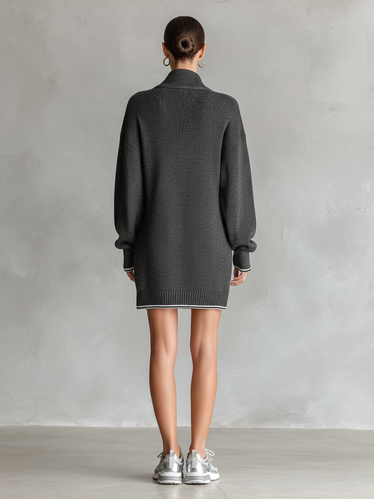 Jimena | Vestido Corto de Punto Holgado Cuello Polo y Cremallera