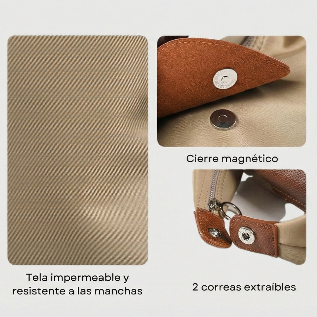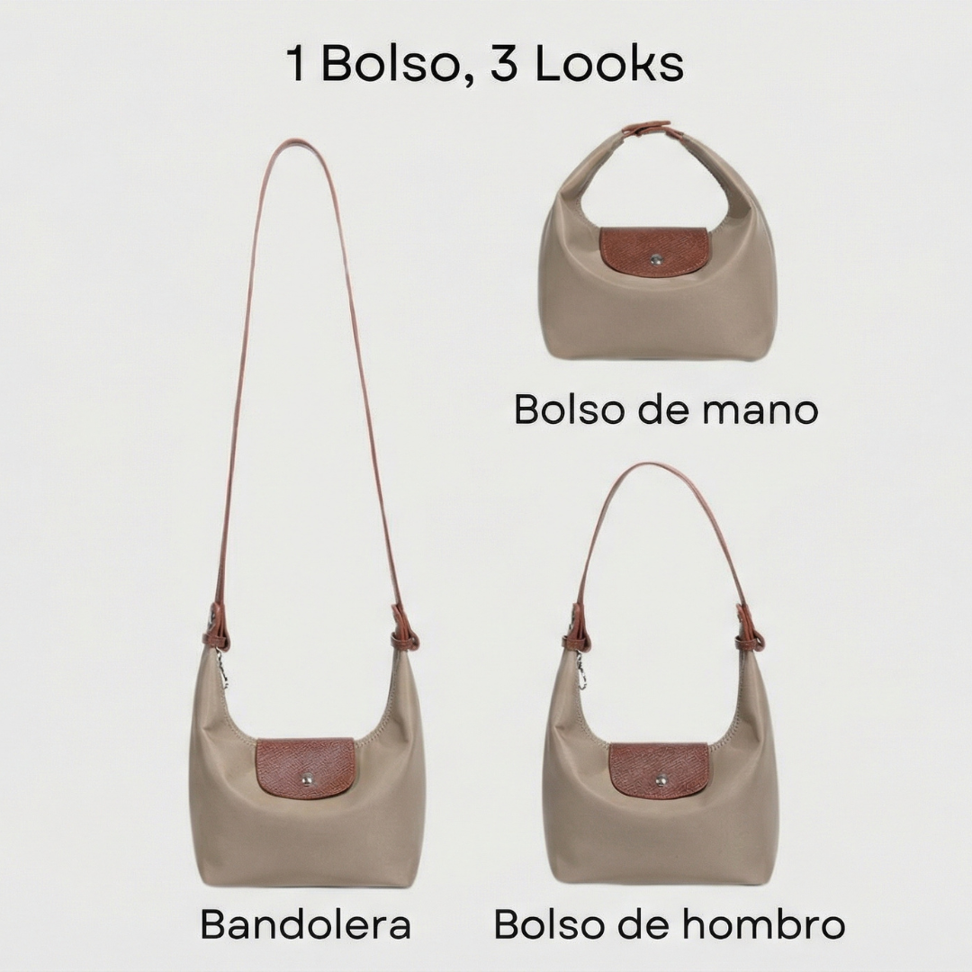 El bolso Camille es un diseño hobo convertible 3 en 1 que se adapta a cada momento del día. Gracias a su sistema de doble correa intercambiable, puede llevarse como bandolera, bolso de hombro o de mano en segundos. Ligero, impermeable y sorprendentemente espacioso, permite llevar móvil, llaves, cartera, maquillaje e incluso Kindle dentro de una silueta minimalista y sofisticada.
