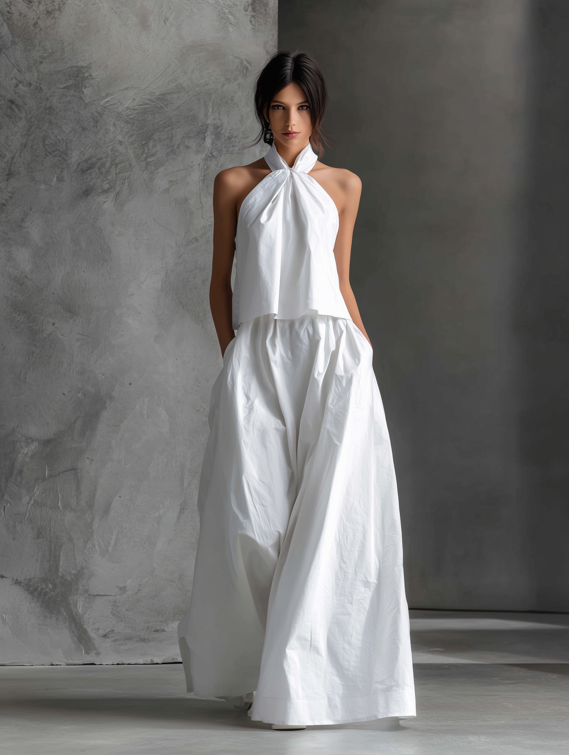 Vanesa | Vestido Largo de Lino Minimalista Cuello Halter Sin Mangas
